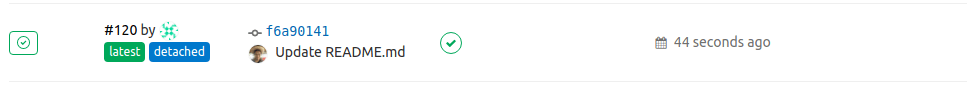 Pipelines tagged with the detached badge indicate that they were triggered when a merge request was created or updated. For example: