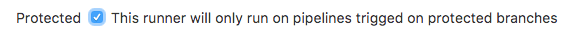 You can protect Runners from revealing sensitive information. Whenever a Runner is protected, the Runner picks only jobs created on protected branches or protected tags, and ignores other jobs.