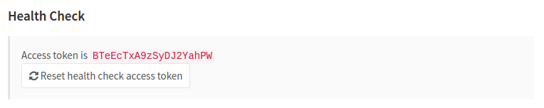 accepted token can be found under the Admin area ➔ Monitoring ➔ Health check