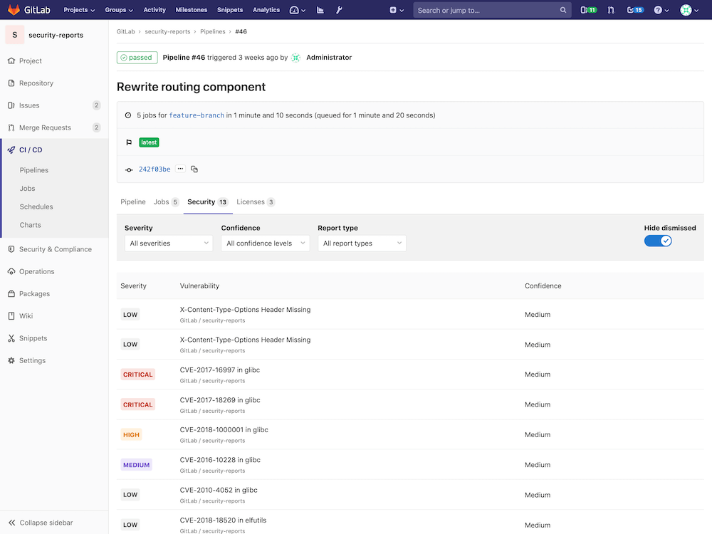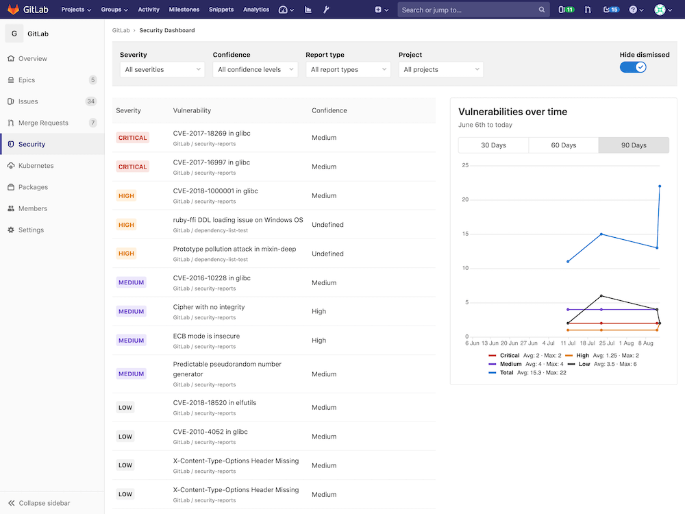 The Security Dashboard is a good place to get an overview of all the security vulnerabilities in your groups, projects and pipelines.