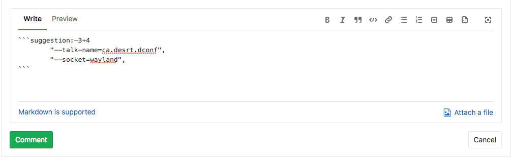 Reviewers can also suggest changes to multiple lines with a single suggestion within Merge Request diff threads by adjusting the range offsets. The offsets are relative to the position of the diff thread, and specify the range to be replaced by the suggestion when it is applied.