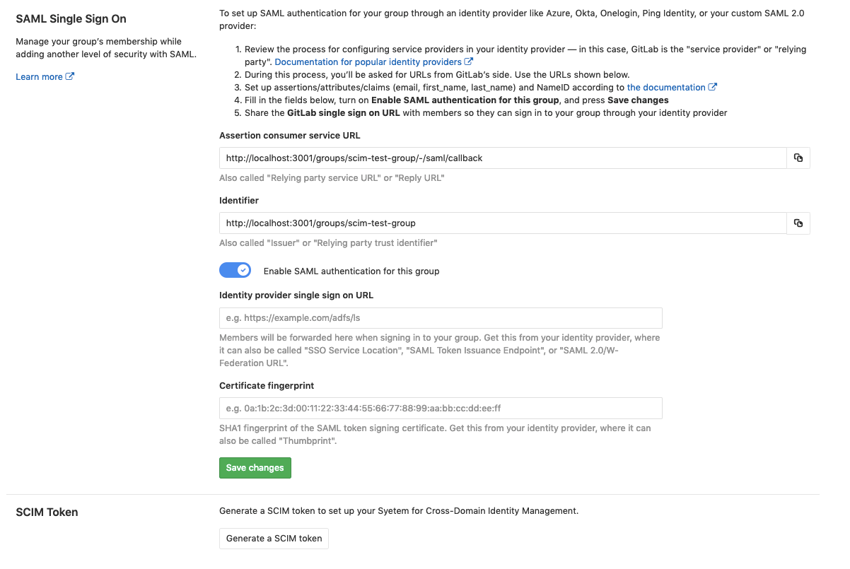 The SAML application that was created during Single sign-on setup now needs to be set up for SCIM.