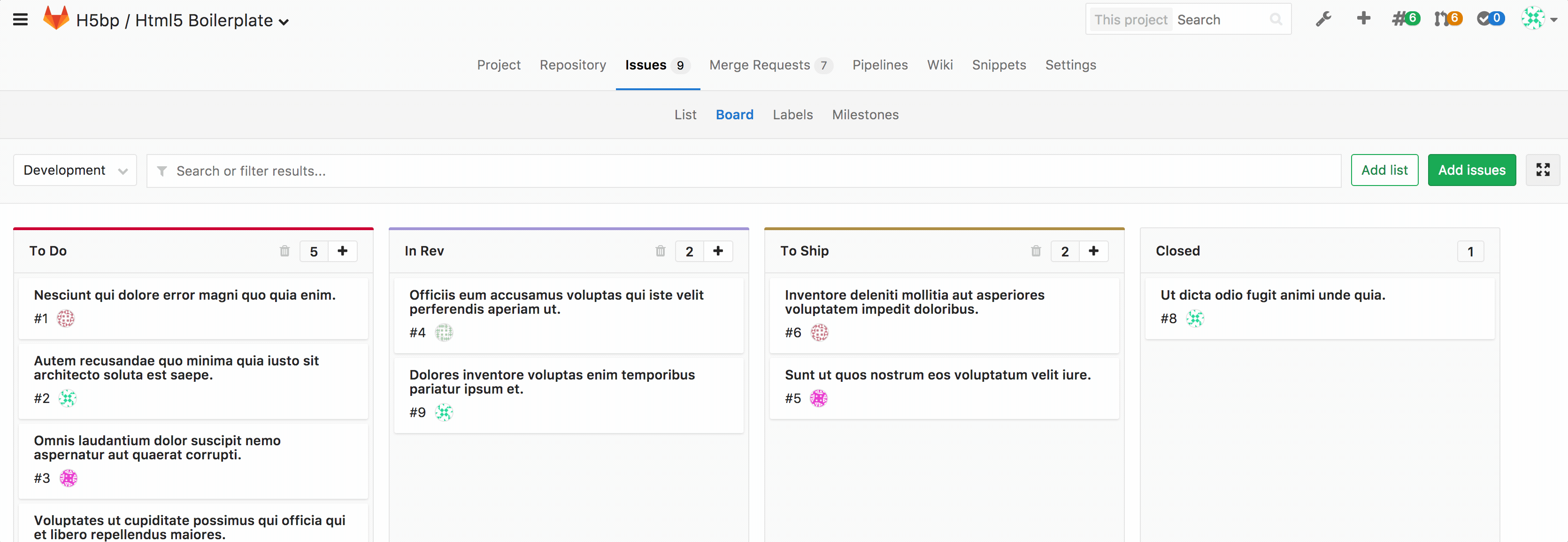 With GitLab Issue Boards, you organize your issues in lists that correspond to their assigned labels, visualizing issues designed as cards throughout those lists.