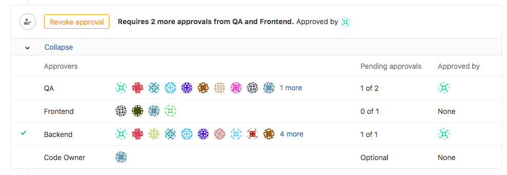 The steps above are the minimum required to get approvals working in your merge requests, but there are a couple more options available that might be suitable to your workflow: